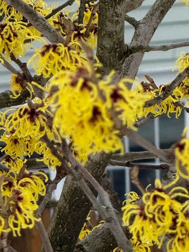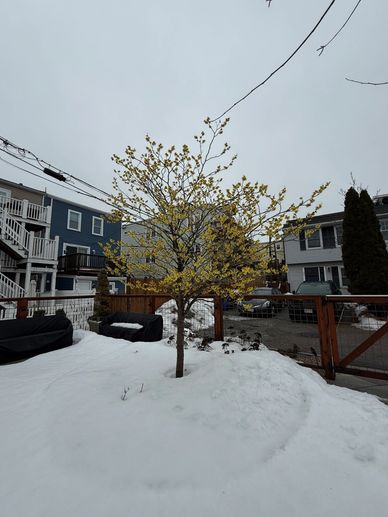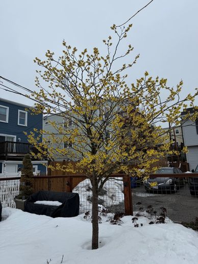 Emily's Gaura Belleza™ Dark Pink, Coreopsis tripteris 'Gold Standard' surround the Primrose Witch Hazel memorial tree