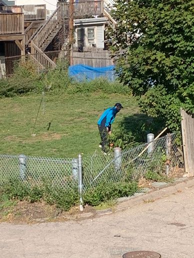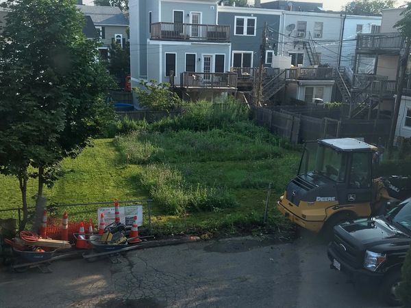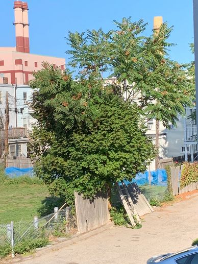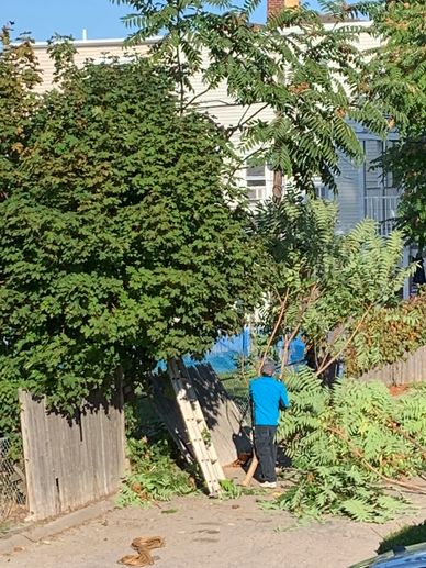 Dave begins pre-construction removal of invasive tree on Barnard Place