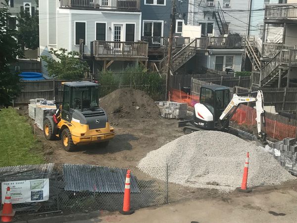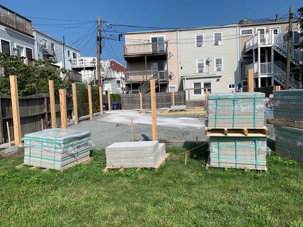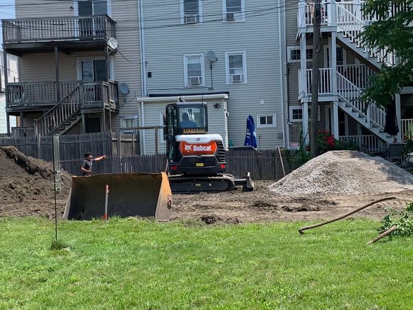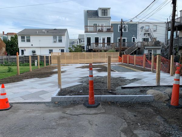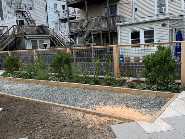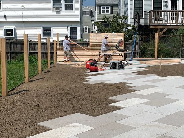 With a lot of hard continuous work over the past few weeks, Watertown Landscaping has come a long way. Concrete foundation wall, fence posts, gravel/grading, bocce court frame and paver installation.