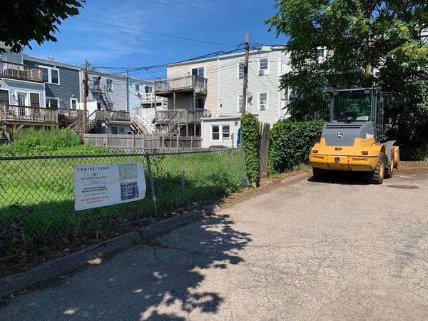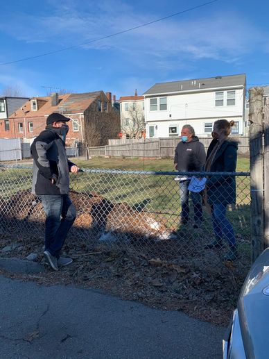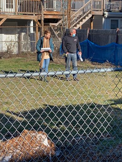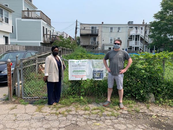 Thadine Brown, Deputy Director of Community Preservation, visits the future site of Barnard Place Park with Evan Spencer (BPP CEO) before groundbreak next week.