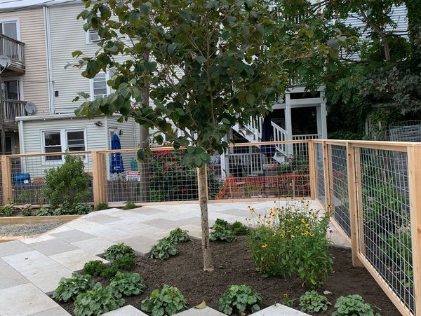 End of a busy day. Three river birch trees, witch hazel, and juniper were installed. Plants and shrubs are scheduled for day two of planting. Barnard Place Park is coming together. So exciting!