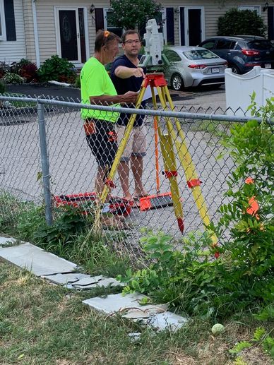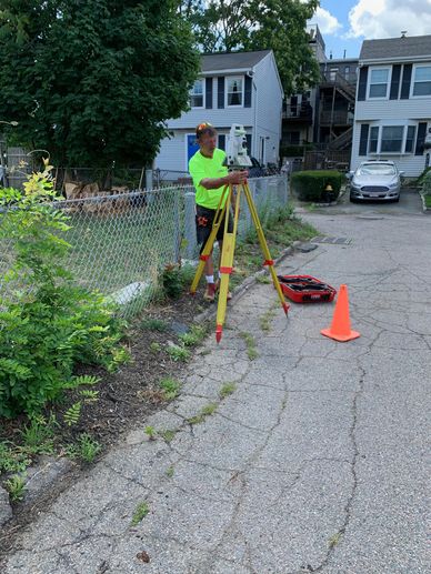 Phil from Merrimack Engineering Services, Inc. sets up his instruments for survey